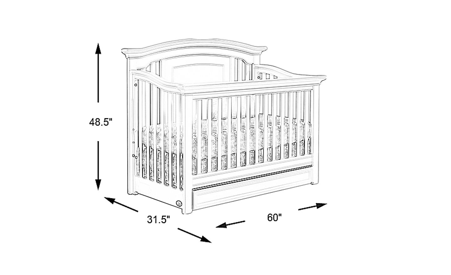 Classic style meets functionality in the Baby Cache Harborbridge white crib. Constructed with assorted hardwoods for structural integrity, this convertible crib features a beautifully curved headboard as well as a simple applied molding detail. The crib's large bottom storage drawer is perfect for holding extra blankets and sheets, or all those tiny baby pajamas. Build on this classic design that will grow with your child by adding the toddler rail to covert the crib to a toddler bed and conversion rails to convert to a full bed. Crib and storage drawer included. Toddler rail and conversion rails are sold separately. Easily converts to toddler bed with toddler rails as an additional purchase. Easily converts to full bed with conversion rails as an additional purchase. Customer assembly required. Crib mattress and linens not included.