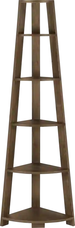 Set up the Backstretch brown bookcase easily and let it do its thing. Look how nice the bookcase fits in a corner of your living room, office or bedroom, allowing you to showcase books and all types of decor easily. Make use of a spot that is often tough to work with the corner. Maximize storage and display with a modern piece that will be sure to help you utilize all the space available to you thanks to the five fixed tray style shelves. Three sturdy beam legs ensure structural integrity to this corner ladder shelf in a dark walnut finished, wood look texture. Anti-tipping hardware is included for further stability. Customer assembly is required.
