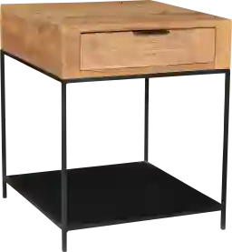 Made from solid teak wood, the Badami side table brings a contemporary edge to your space. One spacious drawer for storage and an airy base make this design a great addition to any room. Use the shelf to add your own personal style and decor. Customer assembly is required.