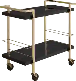 The cart is built for easy maintenance, featuring a sturdy metal frame and high-gloss laminate shelves that are resistant to common spills. Based on our furniture care expertise, we recommend wiping the surfaces regularly with a soft cloth and mild soap and water. This simple care routine will preserve the luster of the finish and prevent the buildup of residue from beverage condensation.