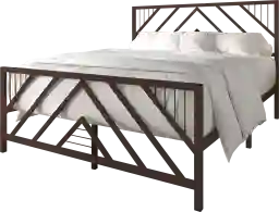 Introducing the ultimate solution for your sleeping needs, this Bainfair metal bed frame is a perfect addition that represents modern design and durability. The geometric slatted design headboard and footboard create a modern and stylish look that will elevate the aesthetic of any bedroom. Expertly crafted from high-quality metal, this bed frame features 12 sturdy slats that provide superior comfort and adaptability to various amounts of weight. With the extra center solid wood legs, this bed frame is able to sustain heavier weights without causing any damage to the frame, offering the ultimate in support and stability. The ample storage space under the bed not only keeps your room tidy and organized, but also makes it incredibly easy to clean. No more struggling to clean those hard-to-reach spaces. The surface powder coating ensures that this metal bed frame is rust-free and requires minimal maintenance, ensuring that it will look as good as new for years to come. Box spring is not required for this metal bed frame. Customer assembly is required.