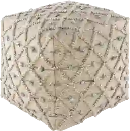 This pouf features a "no-legs" design and a soft-sided structure, distinguishing it from a traditional framed ottoman. Because it lacks a heavy internal frame, it is lightweight and easy to move around the room, making it a flexible addition to boho or cottage-style decor where a relaxed, casual feel is desired.