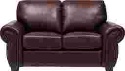 The Balencia loveseat offers luxurious seating comfort for two. It's upholstered in soft, supple top grain leather and boasts a rich brown color. Boxed seat cushions and rolled arms trimmed with brass finished nailhead accents let any duo sink back and relax in supreme comfort. Wooden legs provide stylish support. Top Grain Leather Where the Body Touches and Blended Leather (Polyurethane fabric blended with leather particles) sides and backs.