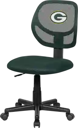 Bring some color to your workspace with the color of your favorite NFL team. The Ball Hacker task chair features amesh back and seat for hours of comfort and armless design for easy movement and versatility. Gas lift offers up and down adjustments to height. Customer assembly is required.