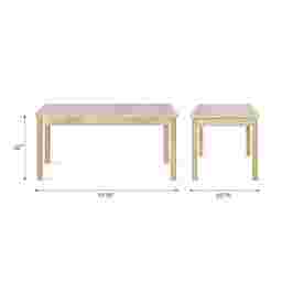 Designed to give children their own space as they play, create or eat together, the Ballou kids rectangular activity table and two chairs is sturdy, functional and perfectly sized for toddlers. This table is durable and boasts a classic design with a natural colored sturdy base with a contrasting gray tabletop while the two chairs are crafted with solid wood and feature a playfully cute bear-eared design on the seatback. The durable chairs of 11.25" seat height feature an easy to move design, making them easy for children to re-position around the home when needed. Built to withstand heavy daily wear and tear, these age-appropriate chairs are easy to clean and maintain. Both table and chairs feature carefully rounded safety corners and edges and no exposed parts that will prevent common accidents and keep children safe, happy and learning. Customer assembly is required.