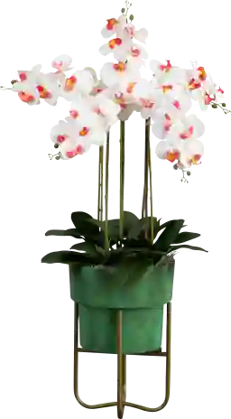 Yes. This arrangement is specifically designed with "naturally occurring details" in the petals to mimic the look of a live orchid. The inclusion of genuine Spanish moss and a patina metal planter adds organic textures that enhance its authenticity. Its 43-inch height makes it an elegant, high-impact choice for a dining room centerpiece or a statement piece in a contemporary living room.