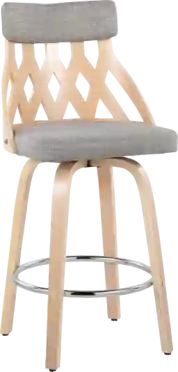Add Mid-Century flair to your counter or dining area with the Bamberg counter stool. A natural wood, lattice style backrest is accented by luxurious upholstery and distinctive tapered wood legs. Featuring an armless design and 360-degree swivel capabilities, the Bamberg counter stool will fit almost anywhere. Customer assembly is required.