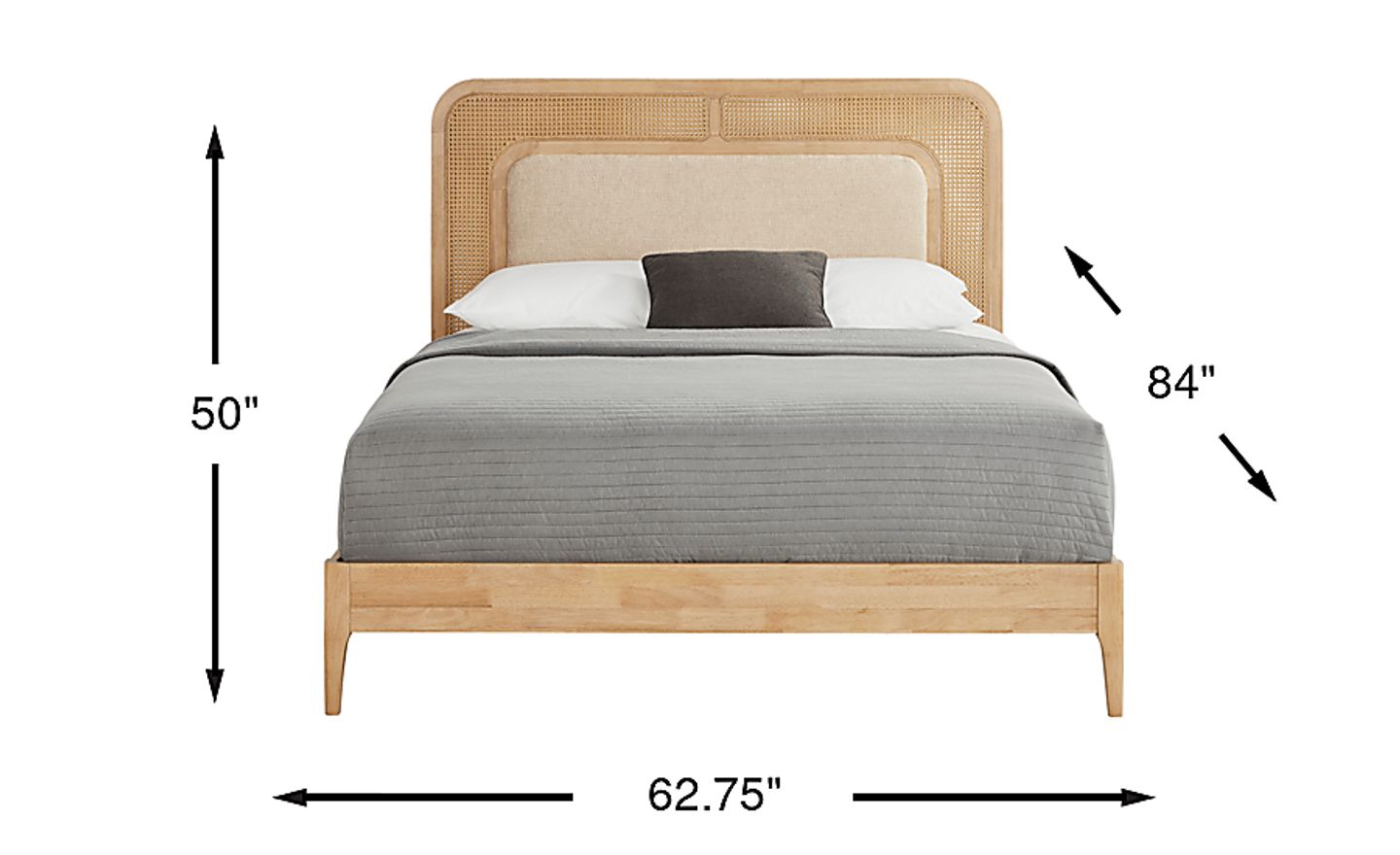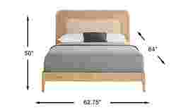 With a width of 62.75" and a depth of 84", this queen bed is sized to fit well in most standard bedrooms (approximately 10'x12' or larger) without overwhelming the space. The 50" height of the headboard creates a stunning focal point, while the "airy" look of the woven rattan prevents the frame from feeling visually heavy, a key design strategy for maintaining a sense of openness in more compact living environments.