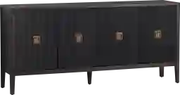 Yes, this piece is exceptionally well-suited for media use. It features two built-in cord management holes that allow you to route cables for game consoles, soundbars, or streaming devices neatly through the back. The four black reeded doors provide a stylish way to conceal electronics while maintaining a clean aesthetic, and the 74-inch width provides a stable surface for large-screen televisions.