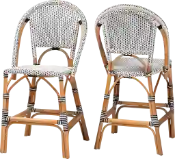 Capture the essence of an exquisite French caf in your space with the captivating design of the Bandyn black and white counter height stool, set of 2. This stool is comprised of a sturdy rattan frame wrapped in woven plastic. Its round backrest offers smooth back support while the openwork design enables light to flow naturally throughout the area. The Bandyn features a convenient footrest for added support. Rattan is a product of nature and may have variations in areas such as, but not limited to, color, pattern, grain and texture. The hair-like strands of rattan/rattan-fiber are common due to the nature of the material.