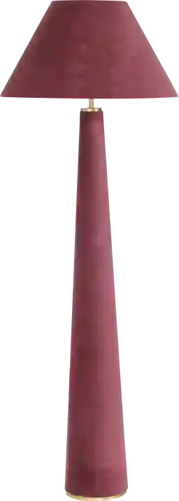 Layer some luxury into your space with the Banneker Shade Burgundy Floor Lamp, a statement piece wrapped head to toe in sumptuous soft-pile velvet. Its monochromatic allure instantly catches the eye, accented by elegant brass trim at the base and a sleek, tapered silhouette-perfect for elevating a tricky corner. Partial assembly may be required.