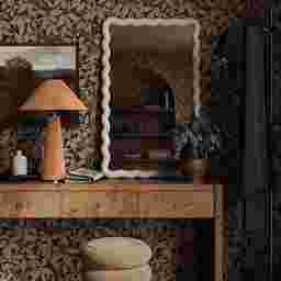Terracotta functions as a sophisticated earthy accent that brings immediate warmth to modern neutral palettes like white, gray, or beige. Because this lamp features a monochromatic velvet wrap from head to toe, it acts as a texture-rich statement piece. It pairs exceptionally well with light-colored wood or white furniture, such as the Bolleana series, to create a curated, high-end look that feels both cozy and contemporary.