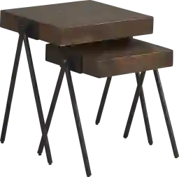 The Banning nesting end table set is a wonderful addition to your space. Two sleek tables store together for expanded use when you need it and compact storage when you don't. A rich brown finish pairs beautifully with the metal legs giving these tables an attractive contemporary look.