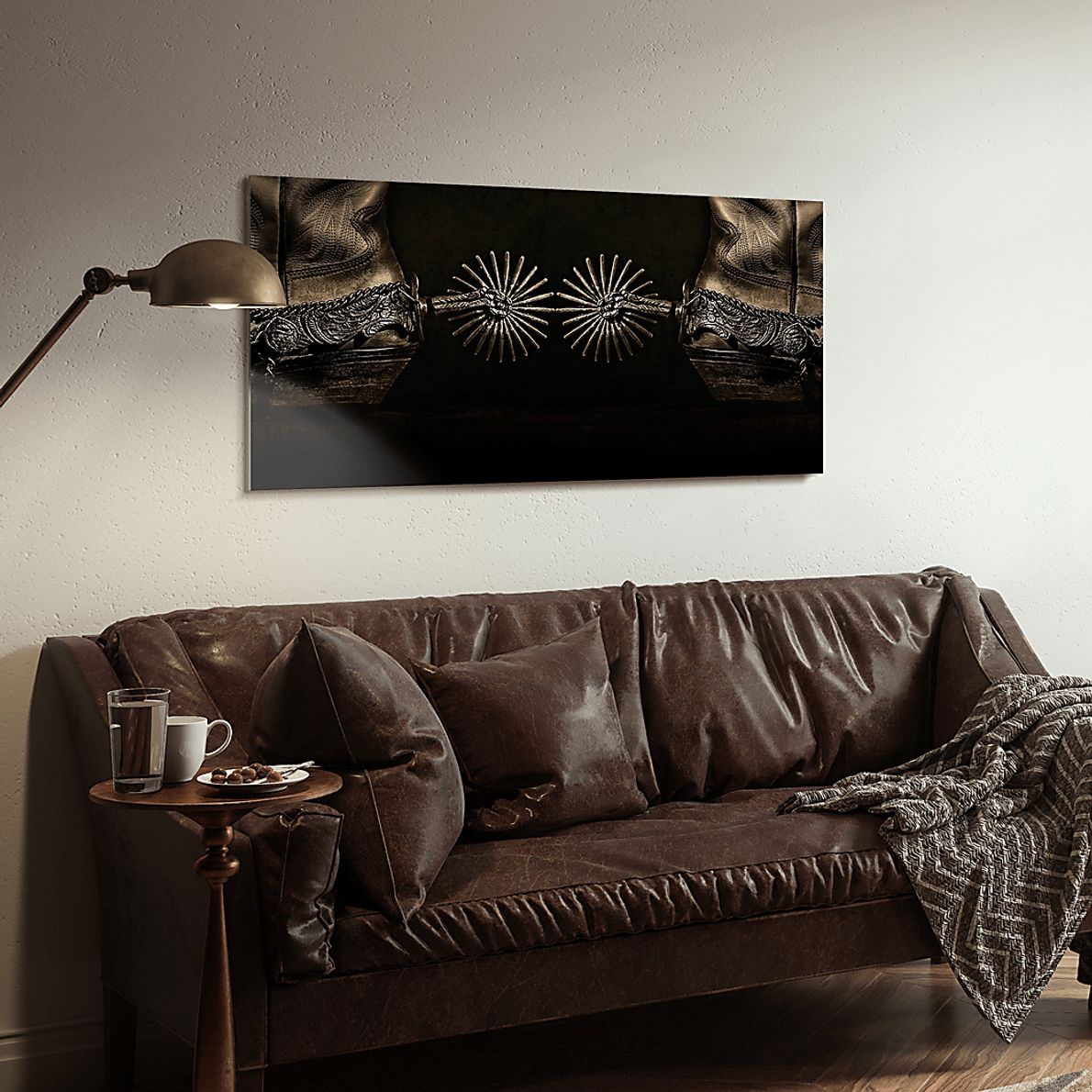 The lure of the wild west and the outlaw making his presence known by the jingle of his silver spurs. The Bannoch multi artwork captures the spirit of freedom in a black and white hue. This piece casts a mysterious, moody vibe, perfect for the wild at heart. This lovely, printed art is sure to make a statement. Two pre-installed steel sawtooth hangers allow for seamless horizontal hanging.