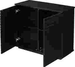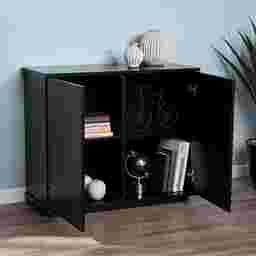 Make storage your priority with this goes anywhere Barbary accent cabinet. Decorative striations complement the sleek black finish. Push-to-open doors provide access to hidden storage, while adjustable shelves make this living room cabinet customizable to your needs. A quaint height offers versatile options for what you store and where you store it. Never struggle to organize your living room or home office again with this versatile storage cabinet. Customer assembly is required. Customer assembly is required.