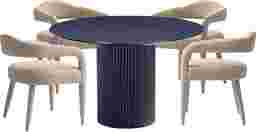 Elevate your dining experience with the Barbette black and gold 5 Pc dining set, a fusion of rugged aesthetics and refined functionality. Crafted for convivial gatherings, its expansive surface accommodates up to 4 chairs with ease, while the raw, textured allure of the wood grain adds a touch of urban sophistication. This table beckons as a centerpiece for communal moments, where the fusion of industrial design and timeless elegance sets the stage for unforgettable meals and shared stories. Customer assembly is required.