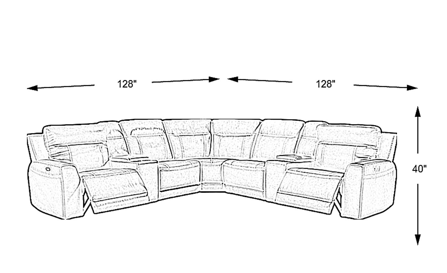 Luxury, comfort and connectivity are yours with the Bargotti sectional. This contemporary seating solution is upholstered in charcoal colored top grain leather where the body touches. Three of the five seats boast smooth dual power mechanisms that adjust the headrests and padded chaise footrests with the touch of a button. The outer recliners on each end feature a USB port while the lift-top storage consoles includes an additional USB port and two electrical outlets to keep electronics charged. Twin cupholders on the console provide another convenient amenity. Upholstery: Top grain leather where the body touches and polyurethane fabric sides and backs.