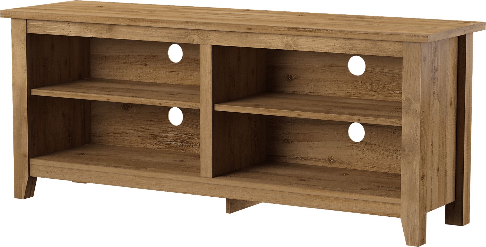 Whether it's a compact apartment or a lavish mansion, everyone needs a versatile TV stand. This modern Barite TV console does just the trick. Its open design offers ample storage space for your home goods. Four cubbies are available for all stowing or decorating needs. See which designs you like best by taking advantage of its style-flexible look. Maybe this week it's farmhouse? And maybe next week, coastal? Use the cord management ports to keep your cords neat and tidy. Customer assembly is required.
