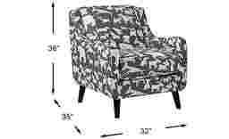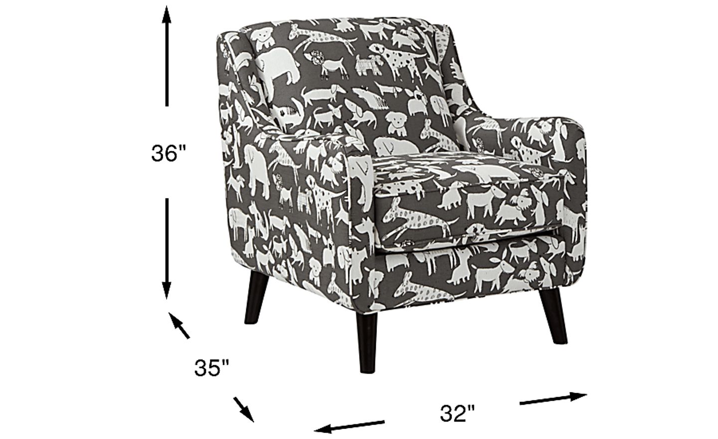 Calling all dog lovers. Do we have a chair for you! The Barkley Heights chair, covered with a fun dog pattern on a gray background, will have everyone asking "where did you find that?" The contemporary silhouette is sleek while the reversible seat cushion and angled legs provide support. 100% Polyester