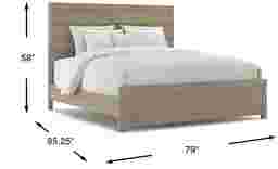The Barringer Place bed is a versatile, modern choice for sweet dreams. A gray finish is applied over oak veneers, highlighting the unique wood grain. The headboard's subtle horizontal panels balance beautifully with the low footboard, creating a contemporary silhouette with a timeless aesthetic. Mattress and foundation (if required) sold separately. Bed shown is queen size.