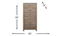 Its slim size and stylish design make the Barringer Place tall chest an attractive storage solution for clothes, linens, or other items. A gray finish is applied over oak veneers, highlighting the unique wood grain. Each of the six drawers is reinforced with French and English dovetail joints, while dust proofing along the bottom keeps your clothes safe from dust. Design details like clean lines and chrome hardware are hallmarks of its sleek contemporary design.