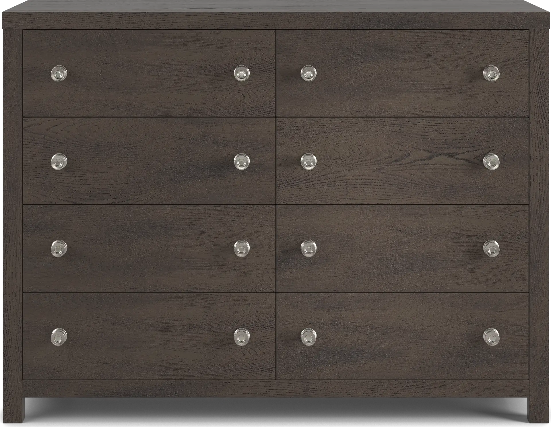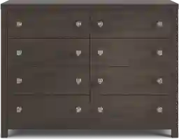 This dresser is designed with eight spacious drawers, offering ample storage for a variety of wardrobe needs. The configuration allows for easy organization: the upper drawers are ideal for smaller items and accessories, while the larger bottom drawers provide deeper storage for bulkier items like sweaters or denim. Its generous 56-inch width and 42-inch height make it a substantial storage solution for shared bedrooms or individuals with extensive wardrobes.