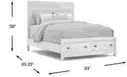The Barringer Place bed is a versatile, modern choice for sweet dreams. Crafted with wood solids, a white finish is applied over oak veneers, highlighting the unique wood grain. The headboard's subtle horizontal panels balance beautifully with the low footboard, creating a contemporary silhouette with a timeless aesthetic. Two storage drawers are an ideal place for storing blankets, out-of-season clothes, or other odds and ends. Mattress and foundation (if required) sold separately. Bed board required for mattress support.