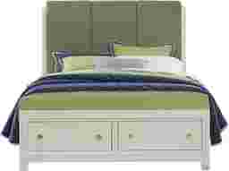 The Barringer Place bed is a versatile, modern choice for sweet dreams. Crafted with wood solids, a white finish is applied over oak veneers, highlighting the unique wood grain. The headboard's vertical upholstered panels balance beautifully with the low footboard, creating a contemporary silhouette with a timeless aesthetic. Two storage drawers are an ideal place for storing blankets, out-of-season clothes, or other odds and ends. Mattress and foundation (if required) sold separately. Bed shown is queen size. Bed board required for mattress support.