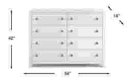 Straight lines and chrome hardware give the Barringer Place dresser a clean, modern look. Crafted with wood solids, a white finish is applied over oak veneers, highlighting the unique wood grain. Eight drawers feature French and English dovetail drawer joints and kenlin glides for stability, while the bottom drawers have been dust-proofed.