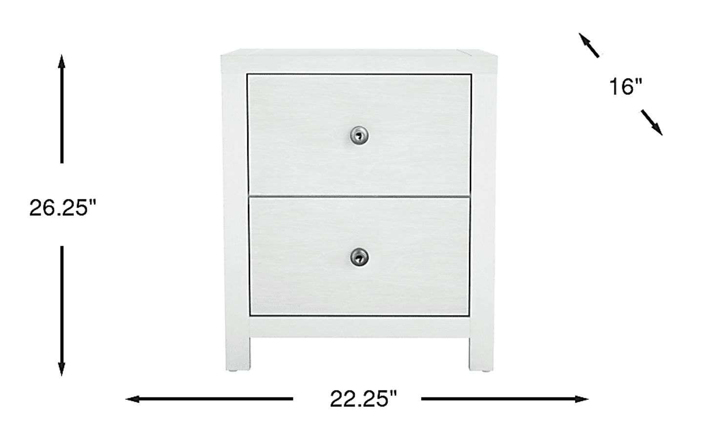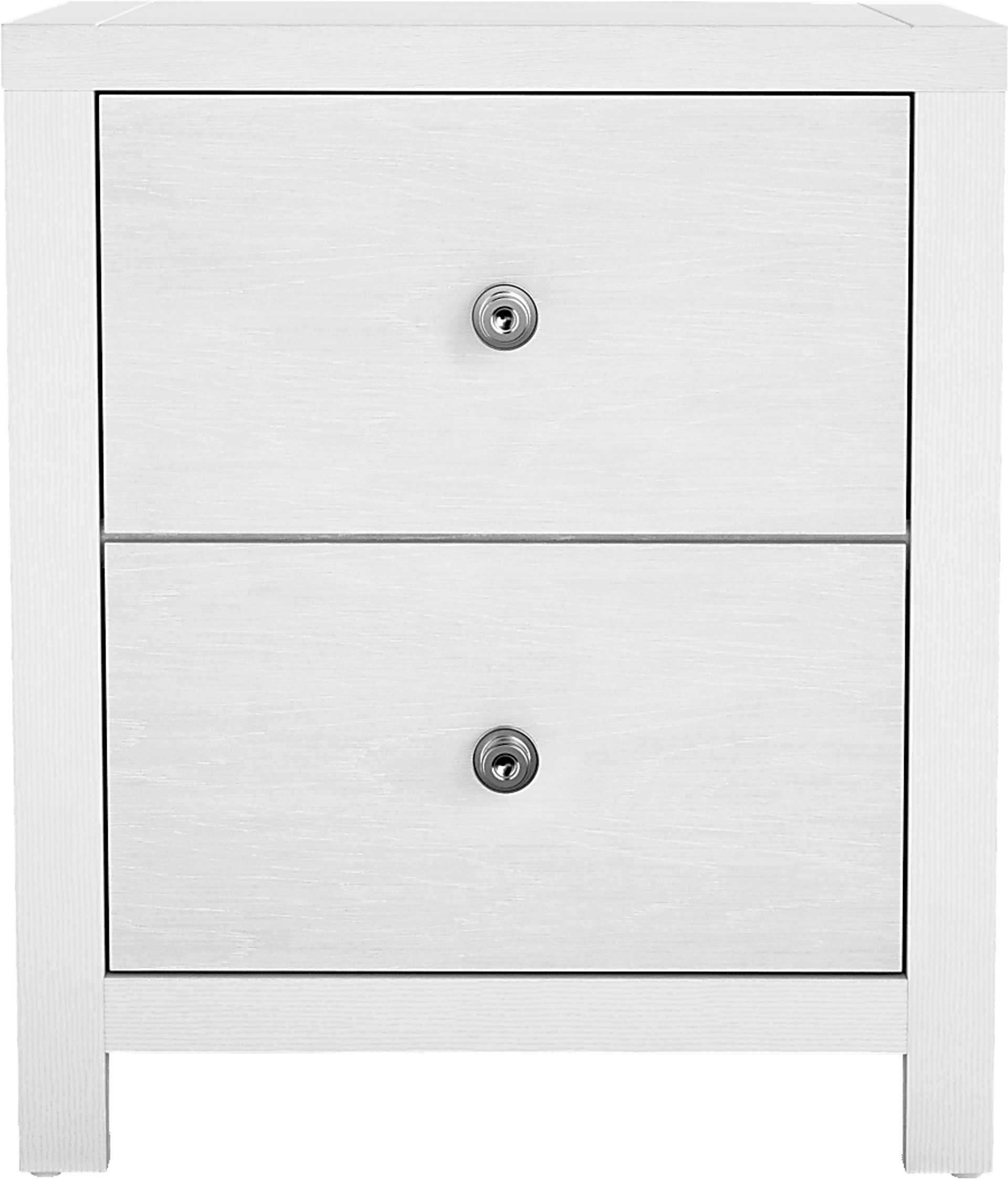Keep books and other items close at hand with the stylish Barringer Place nightstand. A cerused white finish helps this piece stand apart. Extra storage is handy thanks to two drawers with chrome finished pulls.
