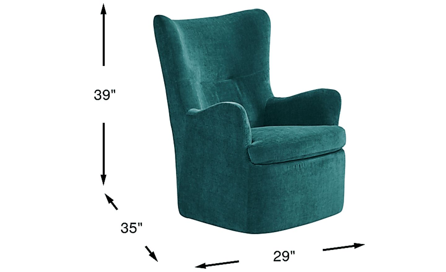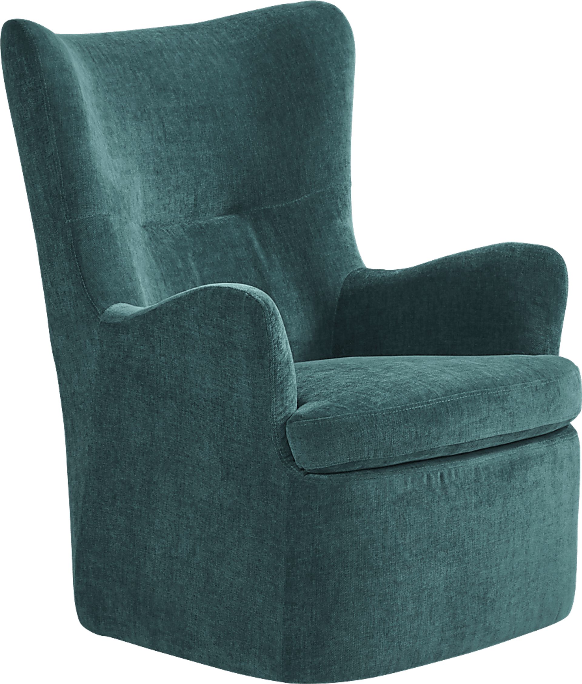 Introduce unique and contemporary seating into your home with the stylish Barsha Heights chair. This chair is upholstered with a soft, velvety fabric in a beautiful teal color. It features a curving top and arms that give this piece a unique look. The swivel and gliding feature make this chair even more comfortable. Upholstery: 100% Polyester.