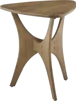 Update your living space with the Barshay triangle wood side table. Inspired from the mid-century modern design, this table features a unique cross base and triangular table top that will certainly make a statement to your decor. Constructed from solid wood and finished in a natural elm wood finish. Customer assembly is required.