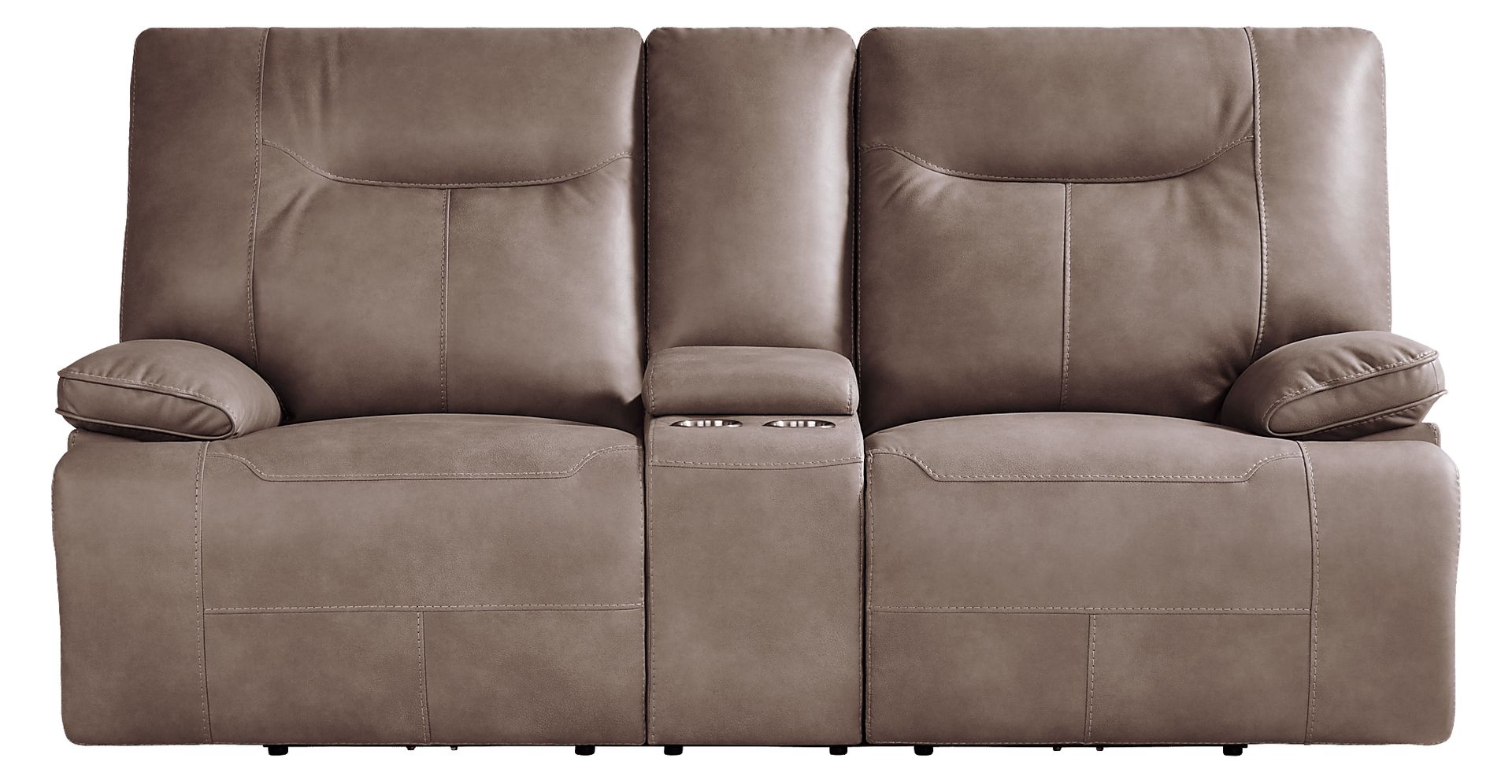 The plush comfort and warm elegance of the Barton loveseat provides the cozy feel of an intimate and connected gathering place. Modern in style, this seat is upholstered in a soft woven fabric in brown and features padded arms and contrast stitching for a touch of casual sophistication. Wide seat and back cushions allow ample space for optimal comfort while the dual power reclining mechanism adjusts the head and footrest to your personal preference. Chaise padded footrests provide additional space to stretch out and unwind. Dual cupholders and a storage compartment in the center console give easy access to your relaxation necessities. Also included are USB ports on each control panel, offering easy charging for devices. Upholstery: 98% polyester 2% polyurethane.