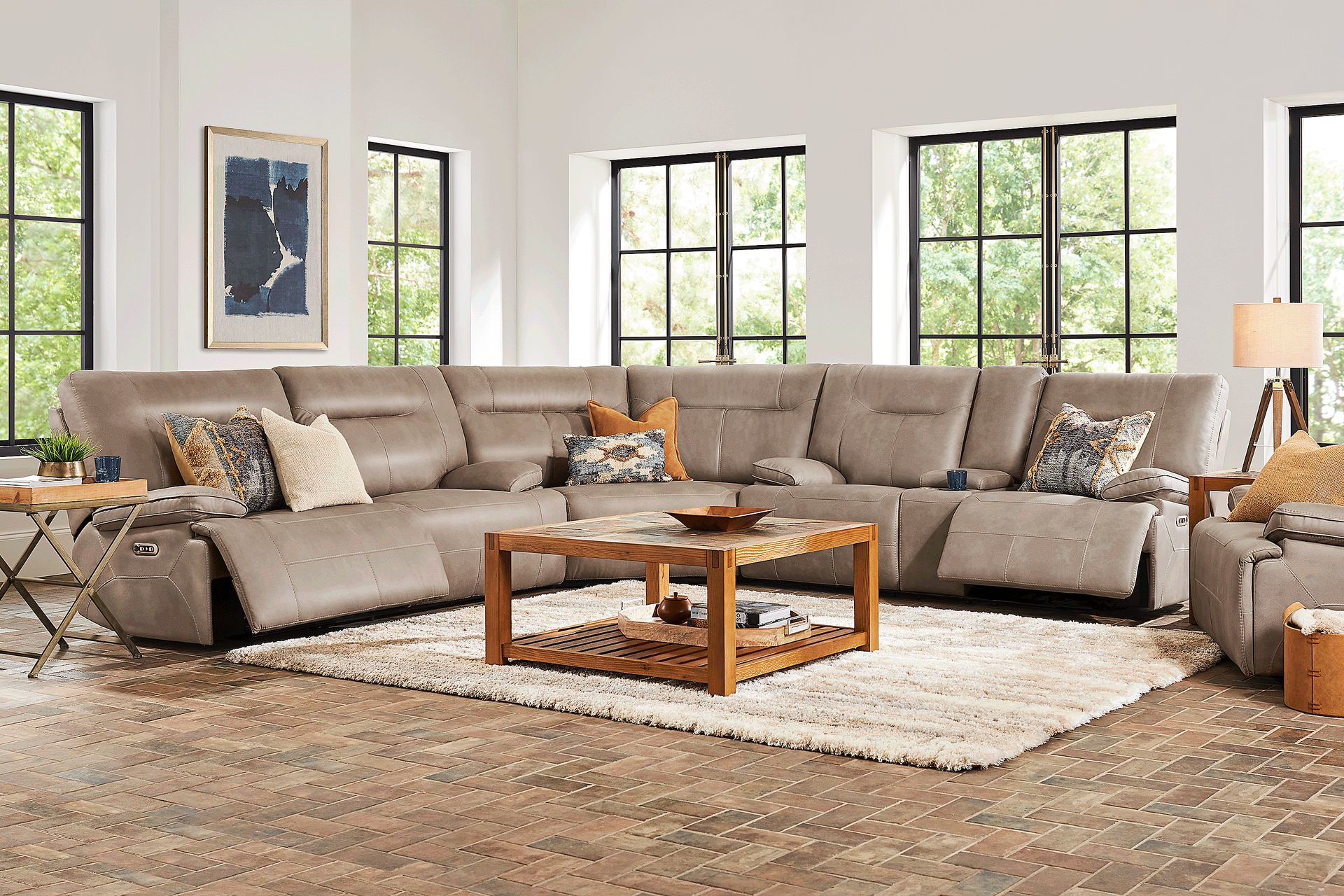 The plush comfort and warm elegance of the Barton living room provides the cozy feel of an intimate and connected gathering place. Modern in style, this sectional is upholstered in a soft woven fabric and features padded arms and contrast stitching for a touch of casual sophistication. Wide seat and back cushions allow ample space for optimal comfort while the dual power reclining mechanism adjusts the head and footrest to your personal preference. Chaise padded footrests provide additional space to stretch out and unwind. Dual cupholders and a storage component in the console give easy access to your relaxation necessities. Upholstery: 98% polyester 2% polyurethane.