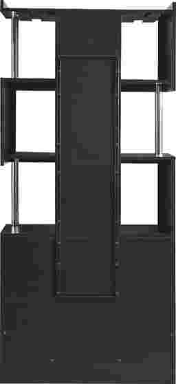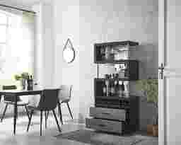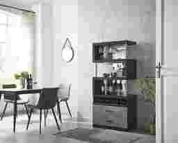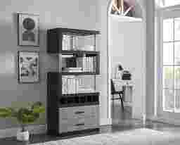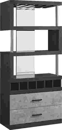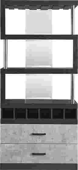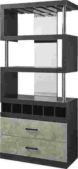 Complement any room with this sleek, modern, and distinctive Barvac bar cabinet. Its artfully crafted design immediately draws the eye. Features include a beautiful wine rack that holds- 12 bottles of wine of all varieties and sizes. This cabinet offers plenty of space for delicate vases or glassware. Use the open shelves to showcase your beverage, ceramic collections, or hang and display your wine glasses. Customer assembly is required.