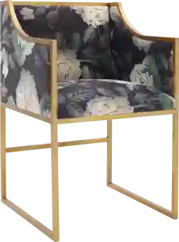 Perfect from all angles, the Batellan arm chair will have you sitting pretty wherever you place her. This floral, velvet chair with a gold steel base will look divine while you dine and dramatic as spare seating in your living room.
