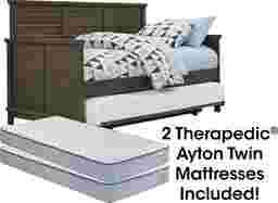 The Bay Street daybed's classic design will grow with your child throughout the years, or even look great in a guest room. Crafted with birch solids and birch veneers in a charcoal finish, this charming piece features a traditionally styled backboard for versatility. Perfect for sleepovers, this bed comes with a pull-out metal trundle that pops up and two Therapedic Ayton mattresses for guest-friendly convenience.