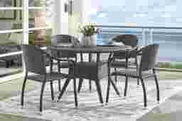 Outdoor meals and refreshments become a stylish occasion with the Bay Terrace 48 inch dining table. This relaxed, casual round table is made with brown woven wicker and an all-weather welded aluminum frame for long lasting rust resistance. This is an inviting and durable gathering spot that can be enjoyed for many seasons to come.