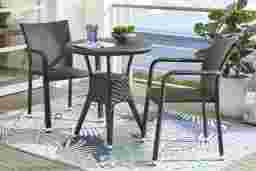 Create an outdoor cafe aesthetic with the Bay Terrace arm chair. A square back and straight arms create a stylish silhouette while brown woven wicker and a welded aluminum frame provide rust resistant durability.