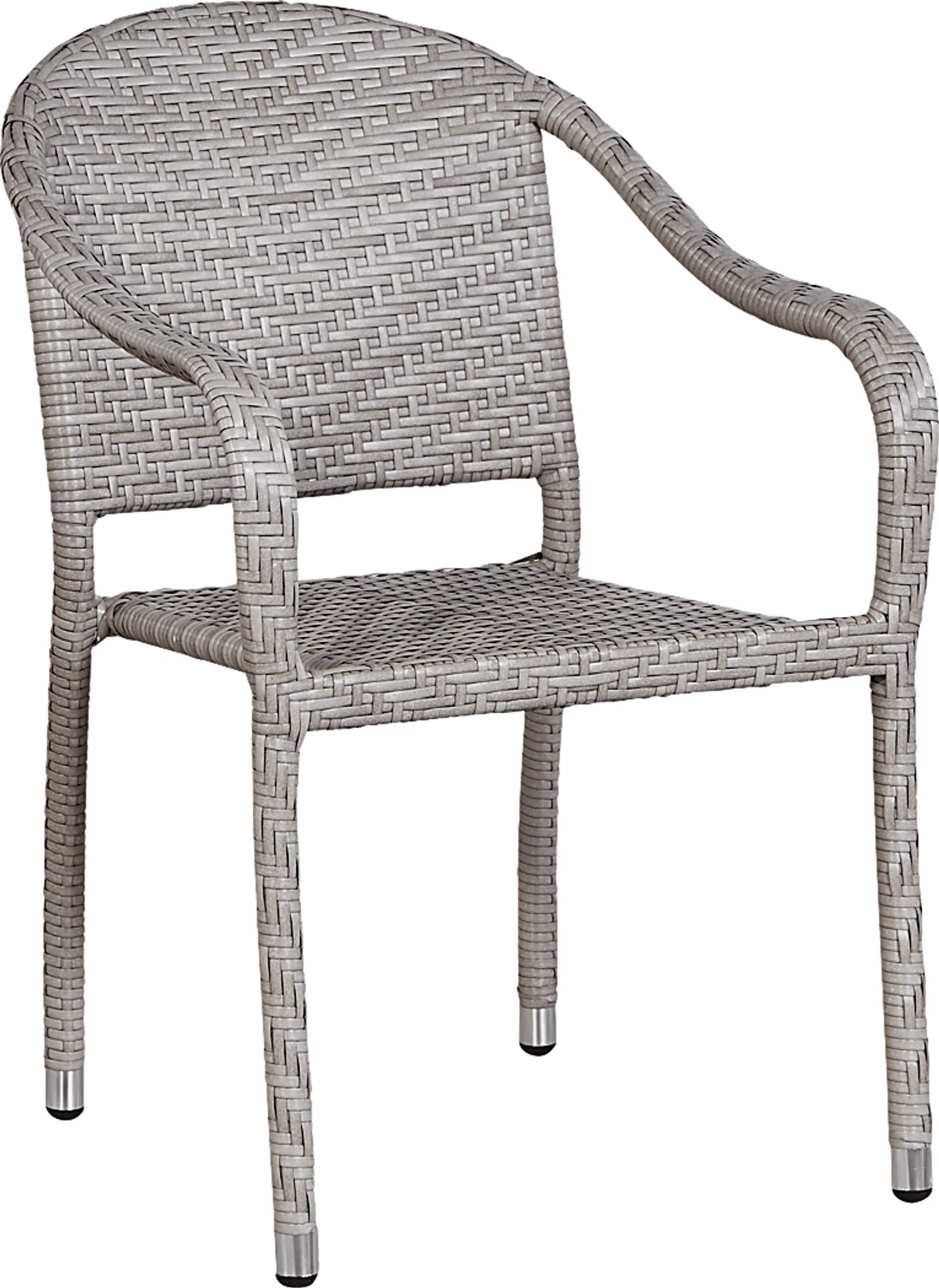 Create your own outdoor cafe vibe with the Bay Terrace bistro style arm chair. A gently curved back and slightly curved arms create a stylish silhouette while gray woven wicker and a welded aluminum frame provide rust resistant durability.