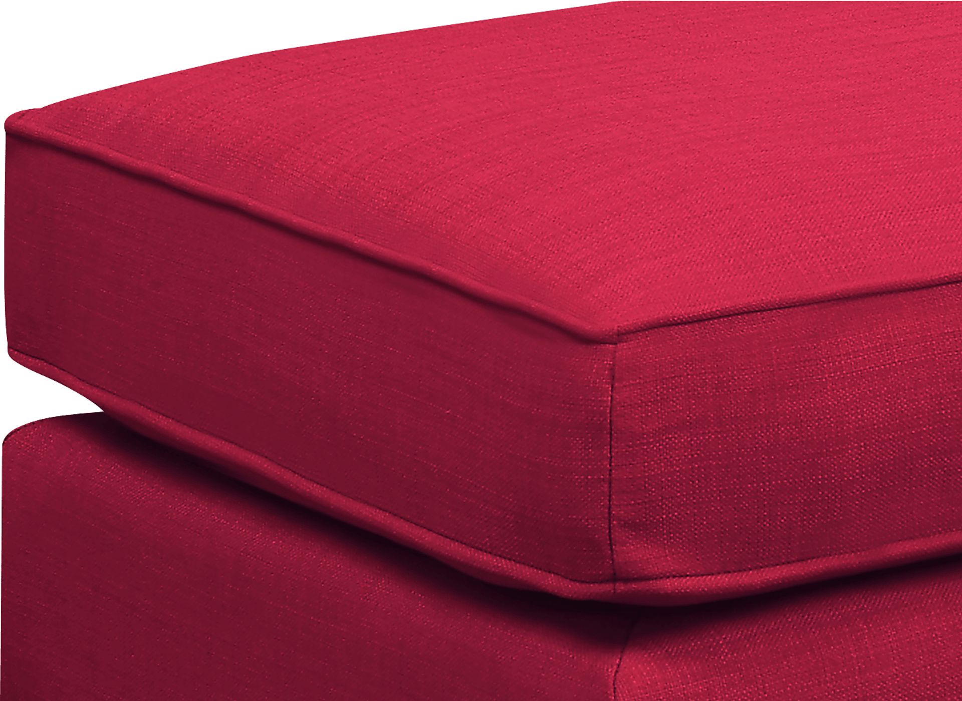 The Bazemore berry ottoman boasts a refreshing combination of contemporary design with a touch of vintage flare. This ottoman is adorned with chic nail head trim and dressed in a fashionable berry fabric upholstery. Customer assembly is required.