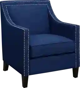 The Bazemore blue accent chair boasts a refreshing combination of contemporary design with a touch of vintage flare. Its clean lines, low back, and straight edge arms are accented by nail head trim and dressed in a fashionable blue fabric upholstery. Customer assembly is required.