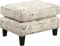 The Bazemore off-white ottoman boasts a refreshing combination of contemporary design with a touch of vintage flare. This ottoman is adorned with chic nail head trim and dressed in a French script fabric upholstery. Customer assembly is required.