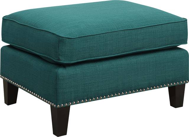 The Bazemore teal ottoman boasts a refreshing combination of contemporary design with a touch of vintage flare. This ottoman is adorned with chic nail head trim and dressed in a fashionable teal fabric upholstery. Customer assembly is required.