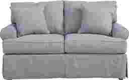 Sun-washed afternoons feel easier with the Beachside Walk collection, where softly rolled shapes echo the rolling waves as they gently lap onto the shore.Transitional in style, this cotton upholstered loveseat comes in a denim blue hue that keeps the look light and breathable. Gently rolled arms and plush, pillowy cushions create a clean, approachable silhouette, while the skirted base softens the profile for a more relaxed, lived-in finish. Upholstery: 100% cotton