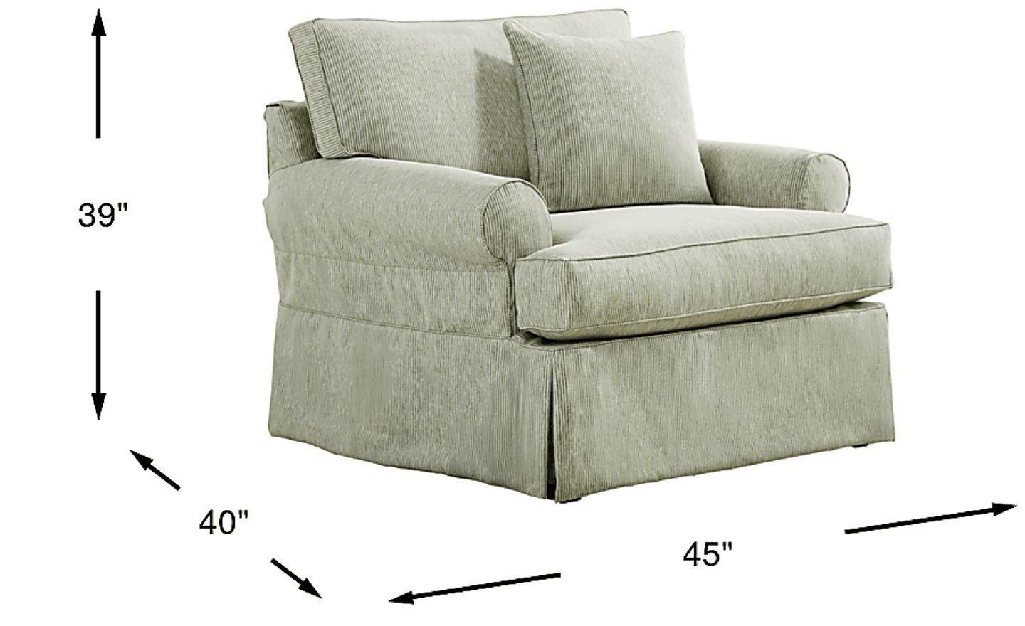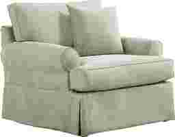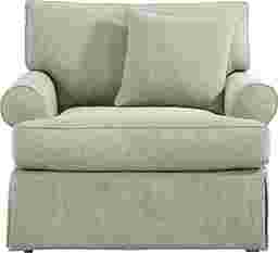 For casual cozy seating, nothing beats the Beachside Walk chair from Cindy Crawford Home. The green textured woven fabric slipcover has an easy and relaxed look, while reversible cushions extend the life of the chair. Upholstery: 53% Cotton, 47% Polyester.