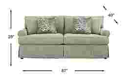 A great casual sofa by day and comfortable guest bed by night, the Beachside Walk sleeper from Cindy Crawford Home has a queen size Sealy Royale mattress to accommodate overnight guests. Green slipcovers cover comfortable cushions and can be washed for exceptional convenience and longevity. Upholstery: 53% Cotton, 47% Polyester.