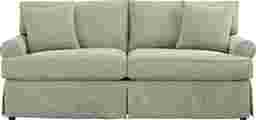 Sun-washed afternoons feel easier with the Beachside Walk collection, where softly rolled shapes echo the rolling waves as they gently lap onto the shore. Transitional in style, this corduroy sofa comes in a kelp green hue that keeps the look light and breathable. Gently rolled arms and plush, pillowy cushions create a clean, approachable silhouette, while the skirted base softens the profile for a more relaxed, lived-in finish. Upholstery: 53% cotton, 47% polyester.