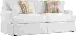 Sun-washed afternoons feel easier with the Beachside Walk collection, where softly rolled shapes echo the rolling waves as they gently lap onto the shore. Transitional in style, this cotton upholstered sofa comes in a refreshing white hue that keeps the look light and breathable. Gently rolled arms and plush, pillowy cushions create a clean, approachable silhouette, while the skirted base softens the profile for a more relaxed, lived-in finish. Upholstery: 100% cotton