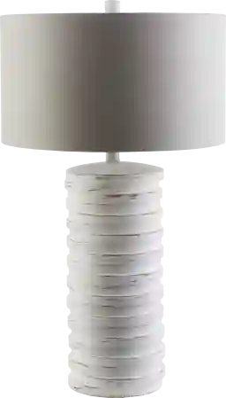 The Beachtree table table lamp has an ivory distressed body made of resin with a light gray cotton shade. This is a solid modern neutral choice but also hints coastal as well, making this a great transitional option for any space. Partial assembly may be required.